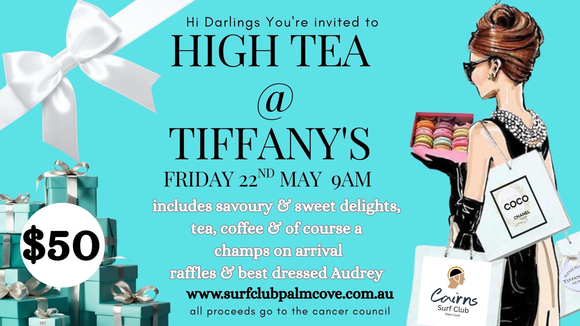 Join us in supporting the Cancer Council at our Biggest Morning Tea: High Tea at Tiffany’s.